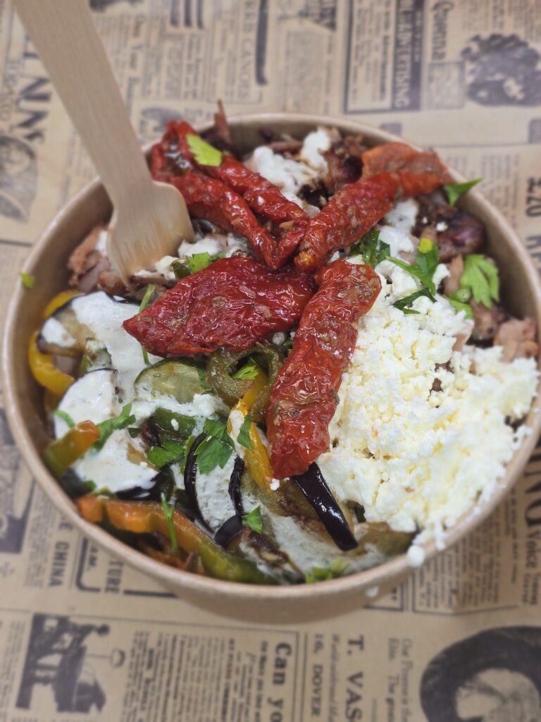 | Berliner Sauce, kebab, salade, tomate, oignon, légumes grillés, persil, tomates confites, feta | 8 € 50 |